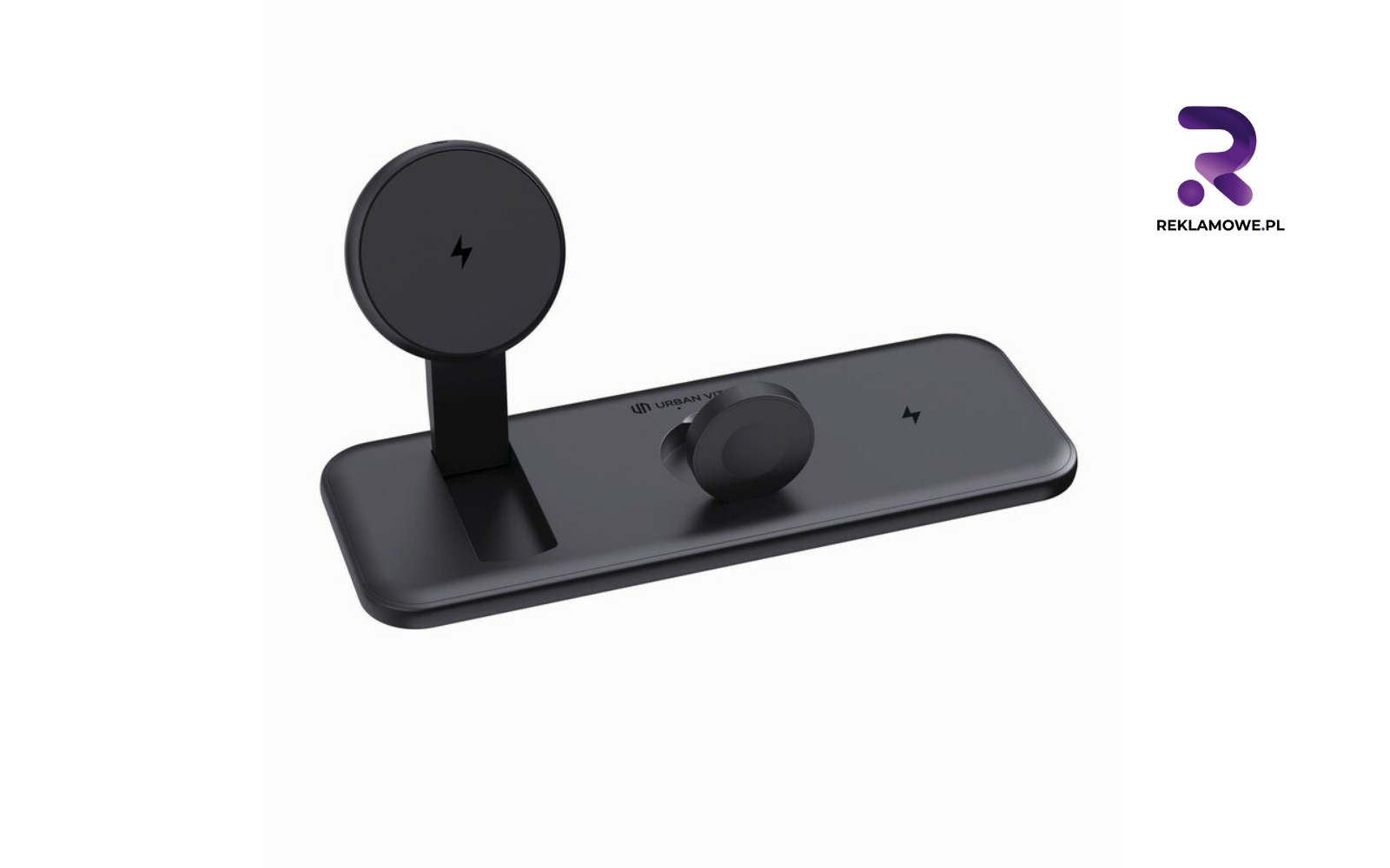 • Stacje ładujące 5-portowe – porządkują kable w biurze i sali konferencyjnej. Kilka urządzeń zasila się jednocześnie, a centralne ustawienie stacji sprawia, że logo staje się naturalnym punktem odniesienia dla pracowników i gości.